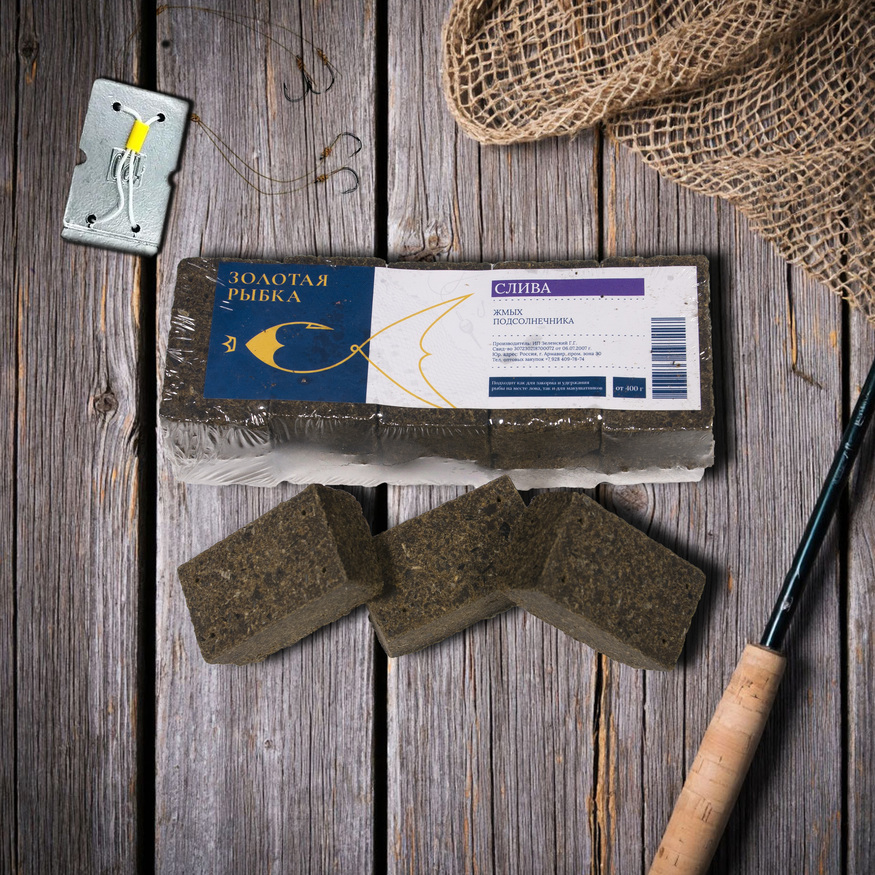 Упаковка - 10 брусочков с отверстиями под крючок, 420гр. Кубики макухи из высококачественного жмыха подсолнечника с применением технологии горячего прессования, а так же добавления иных ингредиентов.