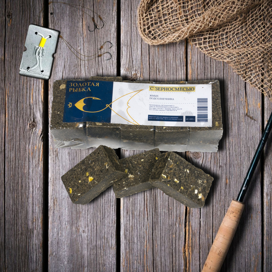 Упаковка - 10 брусочков с отверстиями под крючок, 420гр. Кубики макухи из высококачественного жмыха подсолнечника с применением технологии горячего прессования, а так же добавления иных ингредиентов.